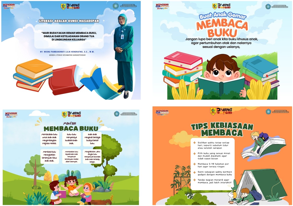 Melalui kolaborasi bersama Bunda Literasi Kecamatan, Pemerintah Kabupaten Wonogiri berkomitmen memperkuat ekosistem literasi melalui pembentukan pojok baca, kelas literasi digital, pendampingan perpustakaan desa, dan kampanye Gerakan Gemar Membaca, serta kegiatan kolaborasi dengan PKK.