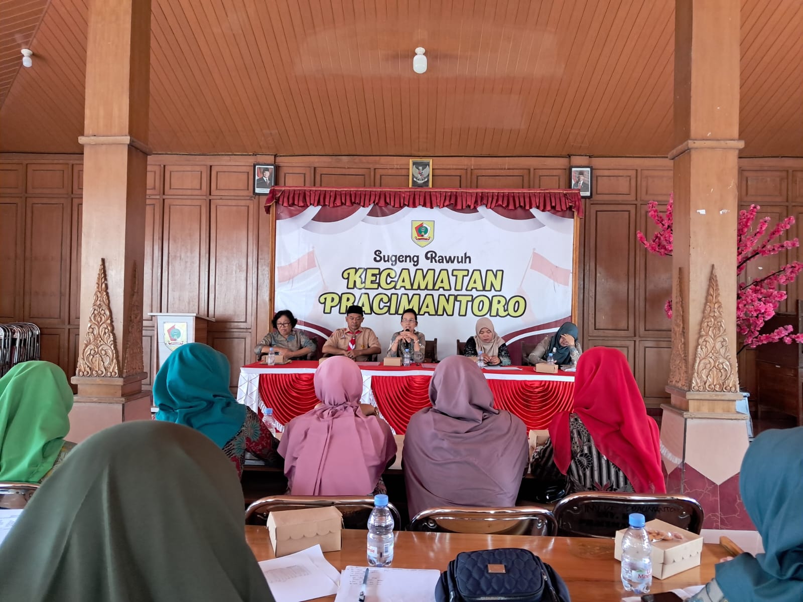 Kegiatan sosialisasi yang digelar di Pendopo Kecamatan Pracimantoro pada tanggal 14 Februari 2026 ini menghadirkan Ny. Sarah Warsito sebagai Bunda Literasi. Acara diikuti oleh pembina, ketua PKK kecamatan, perwakilan desa dan kelurahan, serta ketua dan sekretaris pokja 1, 2, dan 3.