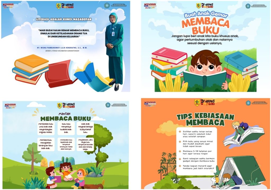 Senin (05/01/2026) – Bunda Literasi Kecamatan Karangtengah Ny. Wisnu Pambukowati Lilik Hendratno, S.E., M.M. menyebarluaskan himbauan kepada Kader PKK se-Kecamatan Karangtengah dan umumnya kepada Warga Masyarakat Kecamatan Karangtengah untuk membangun Budaya Literasi sejak dini, terutama dimulai dari lingkungan keluarga. Orang Tua dihimbau untuk memberikan keteladanan nyata bagi anak-anak dalam hal gemar membaca buku.